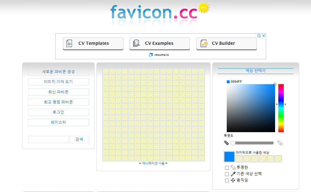 참고로 티스토리용 파비콘은 16x16,32x32,64x64 까지가 최고이며, 파일형식은 jpg,gif,png 순입니다.
