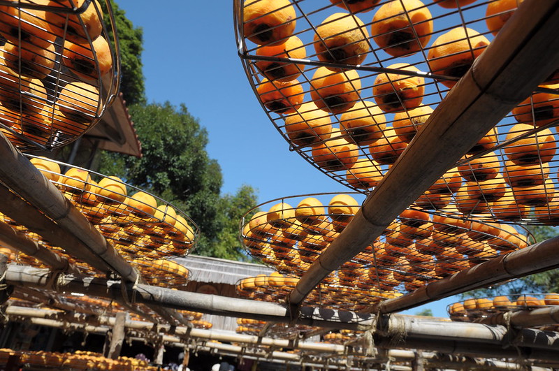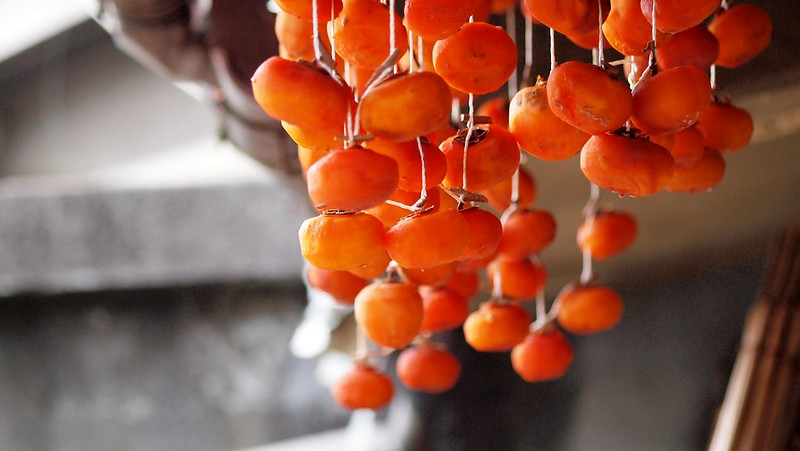 한국에서는 청도랑 상주에 유명한 곶감 곶감을 말리기 전에 감은 떫은 맛이 강하게 나서먹을 수 없습니다.이것은 떫은 감에 포함된 타닌의 수렴 작용에 의한 떫은 맛이 원인입니다.떫은 감에 포함된 타닌을 감 타닌이라고 하며, 감 타닌의 떫은 맛은 감 타닌이 침에 녹아서 느낄 수 있습니다.떫은 감을 말림으로써, 감 타닌이 타액에 녹지 않는 불용성 제품으로 변화하고, 떫은맛을 느끼게 하고, 단맛을 강하게 느끼게 됩니다.떫은감은 이 효과를 노려, 말려 먹을 수 있습니다.